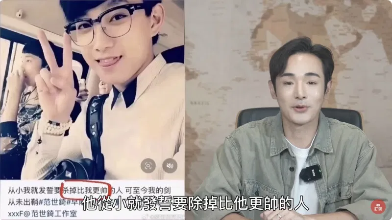 然而近日,一名叫八炯的网红挖出了范世琦过往社群留言,其中有写道:“从小我就发誓要杀掉比我更帅的人,可至今我的剑从未出鞘”,让网友看了都觉得不可思议,太毛骨悚然了。