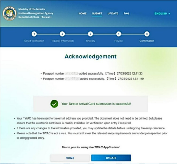 系统会通过Email发送相关文件,收到的话就表示你完成了入境台湾的申请。