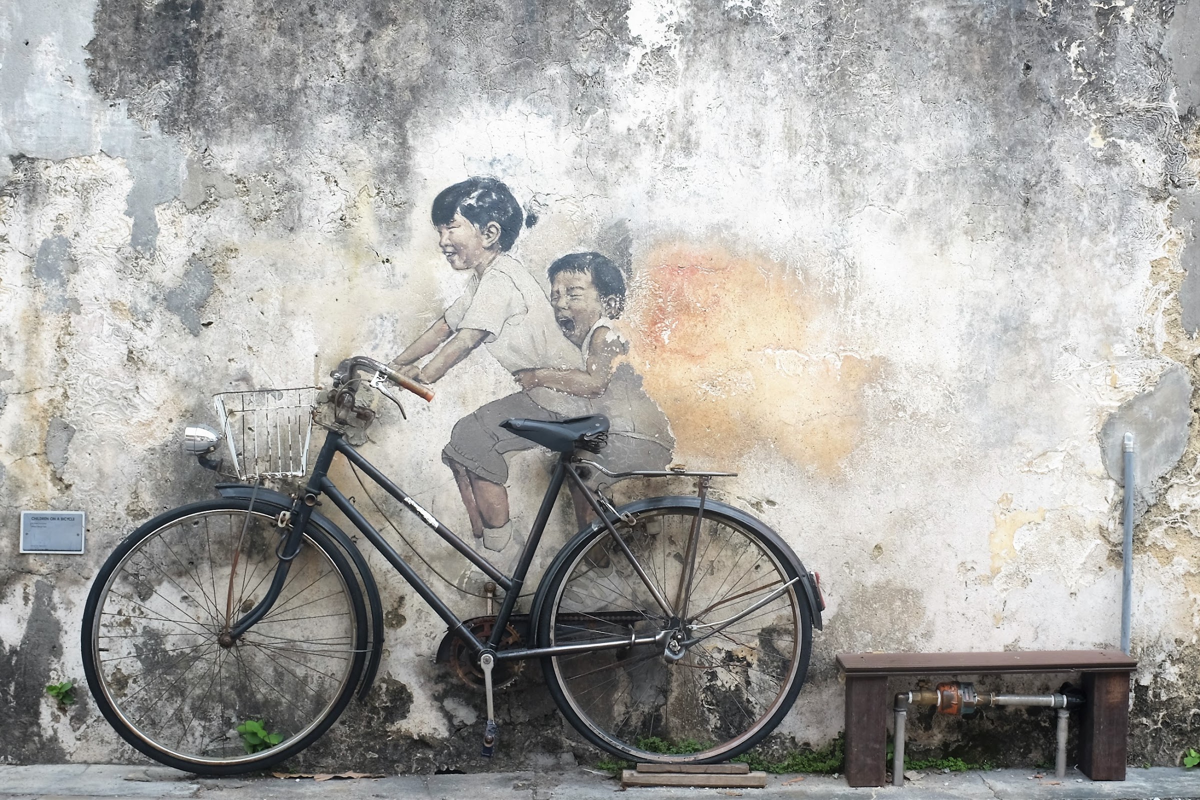 说到槟城,大家都会想到那边著名的壁画吧——《姐弟共骑》,如今也已是槟城George Town的标志性作品了。这幅壁画由立陶宛画家尔纳斯(Ernest Zacharevic)创作,描绘了一对姐弟骑着旧脚车的温馨画面,是槟城最具代表性的艺术地标之一,深受游客喜爱。许多游客都会前来打卡一张,像是一种“我来过槟城George Town”的证明。