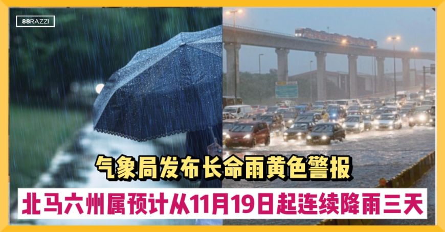 在昨天(11月17日)气象局再次发布消息,对北马地区发布长命雨黄色警报,预警玻璃市、吉打、槟城、霹雳、吉兰丹和登嘉楼六个州属将从本周三(11 月 19 日)起连续降雨至周五(11 月 21 日)。