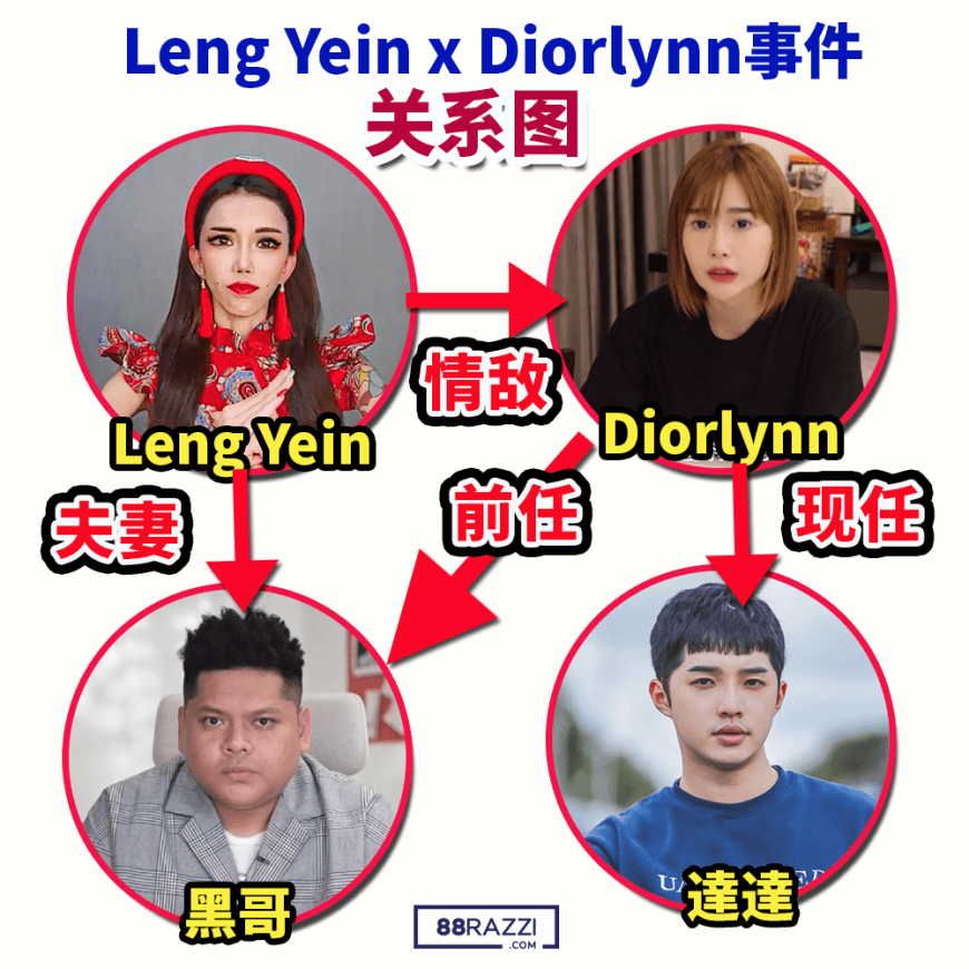 一切都是由2年前说起!就在2019年4月,Leng Yein就曾公开批评Diorlynn,怒骂她纠缠她的丈夫,也就是“黑哥”Khen Chua!而黑哥和Diorlynn曾经交往7年,但5年前已经分手,并与Leng Yein结婚!