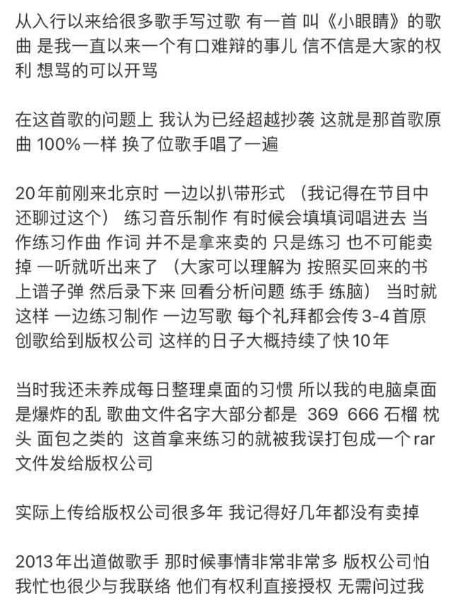 2. 他强调,刚出道时自己是因 “小眼睛” 被调侃的对象,不可能主动创作一首以 “小眼睛” 为名的歌曲让其他歌手演唱。