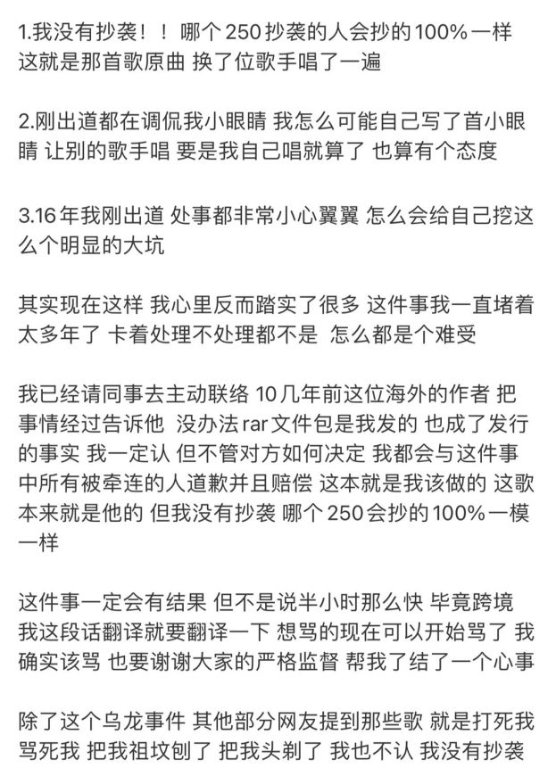 1. 他坚决否认抄袭,认为抄袭者不可能做到 100% 一致,并指出这首歌更像是原曲被换了演唱者。