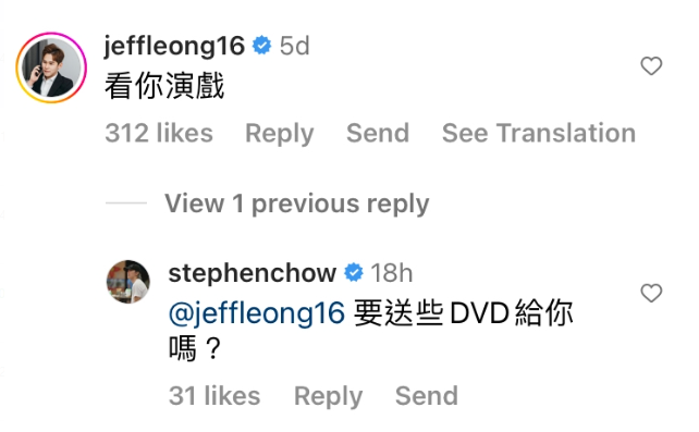 大马网红Jeff Leong的留言也被星爷回复了,星爷还说要送DVD给Jeff,小编也想要!