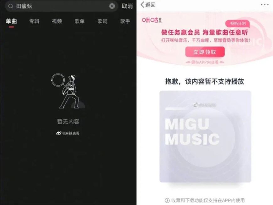 不只如此,歌曲《离岛》中有一句歌词也被拉出来讨论,结果该曲被中国音源平台下架,咪咕音乐更是直接将Hebe所有作品和歌手资讯都删除。