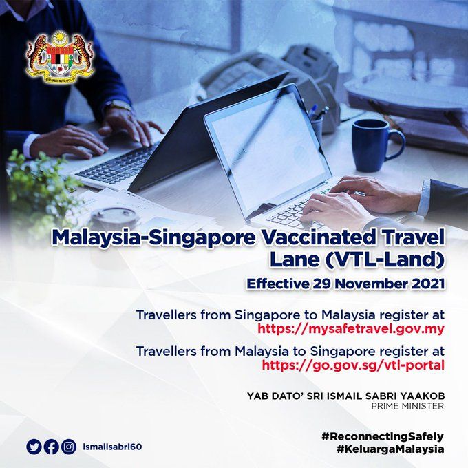 Malaysia and Singapore agree to launch Vaccinated Travel Lane (VTL) starting from 29 November 2021.