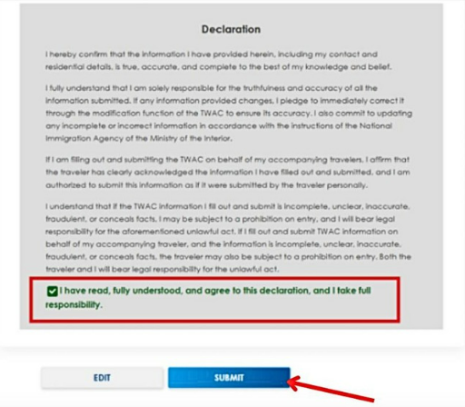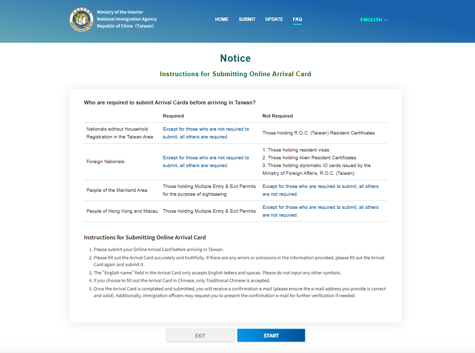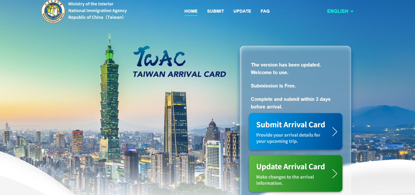 在抵达台湾三天之前到台湾移民署TWAC官网(https://twac.immigration.gov.tw/),点击【Submit Arrival Card】进行线上入境登记的填写。
