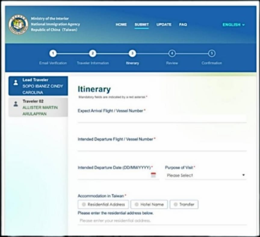 需要完整填写入境台湾所需的资料:航班、飞机起飞 / 抵达时间、入住的酒店资料。