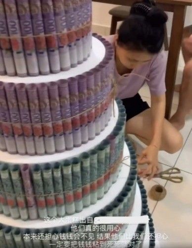 面对这么大的巨型蛋糕,也有网友质疑蛋糕上纸钞的真伪,是不是用了假钞一个一个粘上去。对此,妹妹的一名友人也在面子书上澄清,表示自己见证了整个蛋糕的制作过程,用的每一张都是真钞。