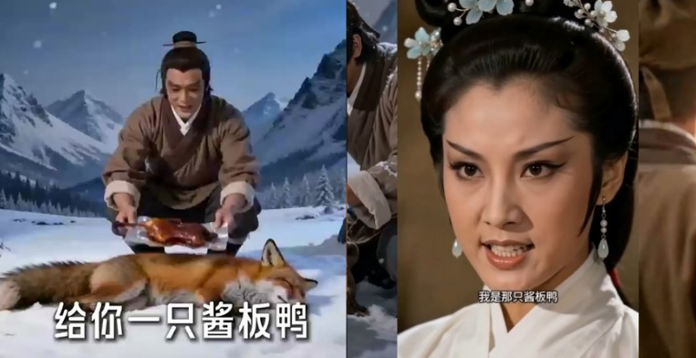 一系列的邵氏武侠画风的短视频,这一句武侠对白,在短短一个月内就创造超过50亿次播放量,连天后蔡依林都忍不住跟风模仿,成了全网皆知的文化符号。