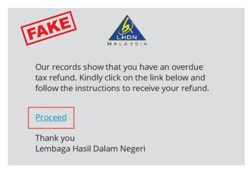 前阵子出现有诈骗集团冒用大马税收局(LHDN)的名义行骗,向民众发送冒充的email让民众以为是来自LHDN的email然后进行诈骗!以下是一些诈骗邮件的例子,大家看了一定要分享给身边的朋友也让他们知道及提防!