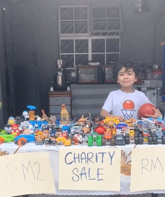 从Twitter上得知,小男孩在自己家里的车库前摆档售卖自己的玩具,价钱介于RM2 至 RM5!推文中妈妈也很感谢全部给予自己儿子支持的人们,帮助他完成了这项慈善计划。