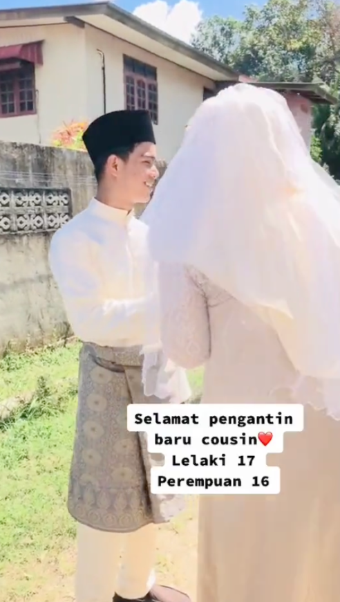 事情是这样的,事情发生在哥打峇鲁,新娘的表姐“Qiss.moyy”日前在TikTok发布婚礼现场视频,透露16岁表妹嫁给了17岁少年,而新郎将在今年参加大马教育文凭(SPM),她在内文中提及「表妹,祝贺新婚愉快!新郎17岁,新娘16岁」