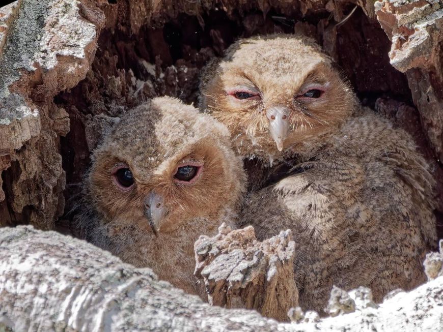 根据《8视界新闻网》报导,这颗大树的树洞内有两只嗷嗷待哺的猫头鹰幼崽。有经验的摄影爱好者透露,幼崽将在这一两周内学飞,相信接下来将会有更多人闻讯而来。