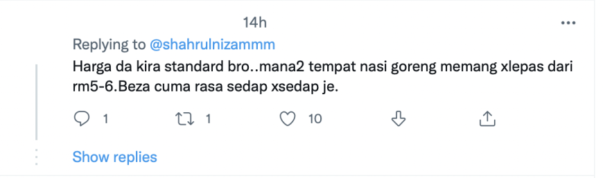 现在的物价越来越高,以前可能一碟炒饭只要RM3-4,但或许现在已经起价至RM6-7以上了。
