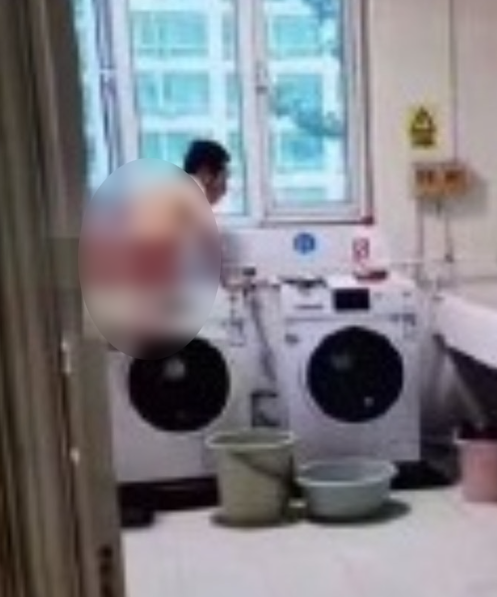 8日,他们看见一名全身赤裸的男子趴在洗衣间一台洗衣机上,将下体放进投放洗衣剂的盒子中泄欲,全程男子都没有发现门外正有人拍照。