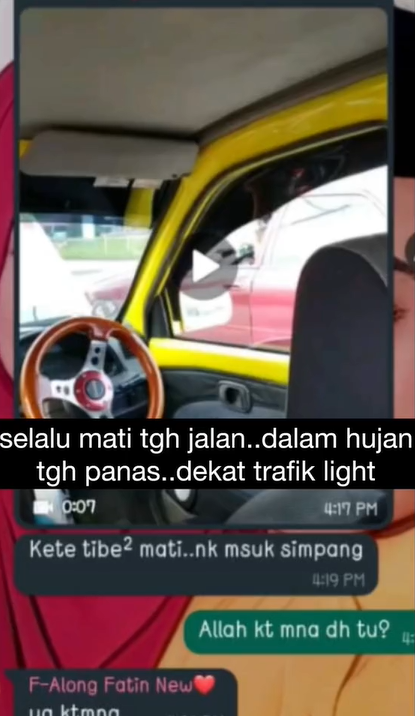 她说,父母从她还在求学到她出来社会,一直都是开着同一部车子,而这辆老旧的车子经常都会发生 故障,导致车子抛锚在路旁。