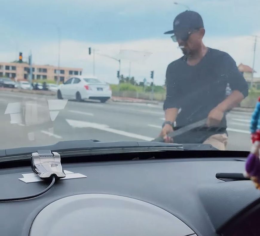 博主只能在车里大声质问,看着Myvi车主从后备箱拿出铁支疯狂砸自己的车,然后对着他们一顿骂和比中指。