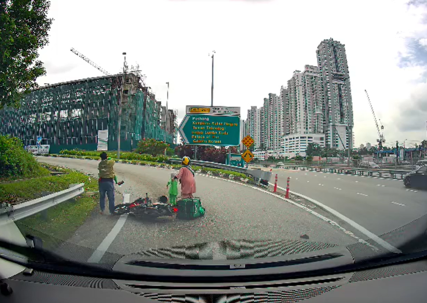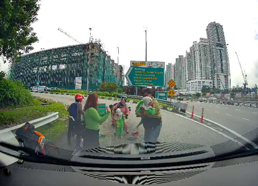 事后,皮卡车逃离现场,留下被撞倒的摩哆,而摩哆上的父母则安抚两名女儿,而附近的道路使用者也见证纷纷施予援手,协助这一家四口。