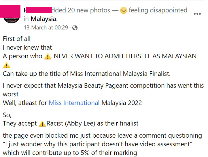 近日,2022年大马国际小姐总决赛8强参赛者Abby Lee因发表了“不把大马放在眼里,只爱中国、爱日本”等不当言论引起了大量网民的谩骂!