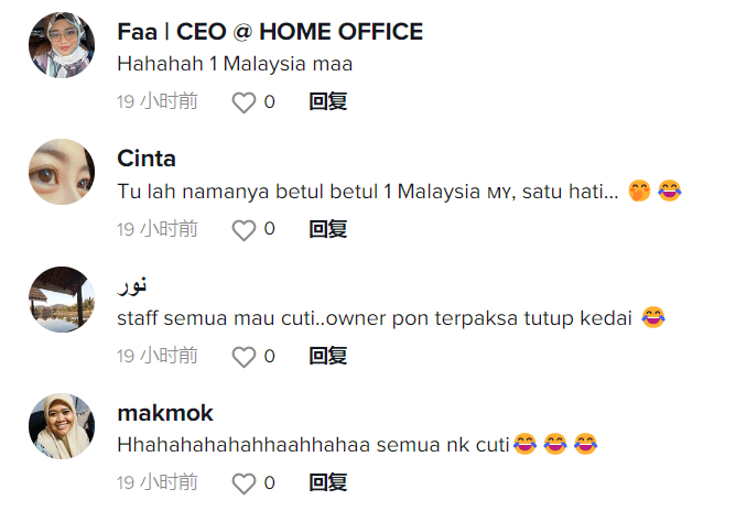 在这个视频上传到TikTok之后,竟引起网民的热议,大家都纷纷表示自己感同身受!有网民表示,自己原先是想趁着悠闲的假期外出打包Nasi Lemak当早餐,但是却发现卖Nasi Lemak的老板也休假。最后,被迫自己下厨煮早餐。