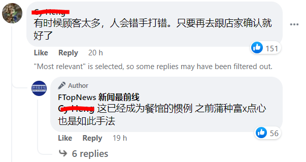 帖文一出,马上就引来许多网友留言分享!有网友表示“芙蓉人都不会去这间吃!”、“这已经不是第一次了!”、“这是餐馆的惯用手法!“,但也有网友认为是店家太忙,不小心打错单!