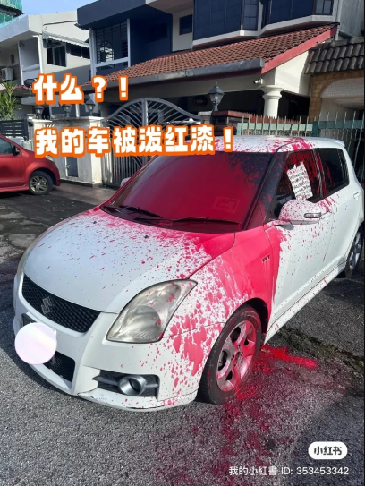 根据《星洲日报》报导,名为海利利的女子于上周六(25日)在小红书发文申诉,她接到了哥哥的电话,并被告知自己停在邻居家门前的轿车被泼红漆。