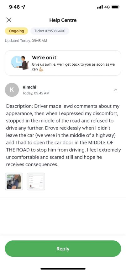 Michi也有更新表示自己已经打电话向Grab投诉,他们并没有质疑她而是向她道歉并表示会处理此事,要不要报警是Michi的自由。