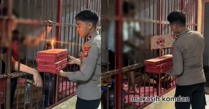 这位狱警是天使吧!一名来自雅加达的狱警因一则他Prank(恶整)在网上爆红,事实上是为了帮囚犯庆祝生日,甚至还买了Pizza请他们吃!