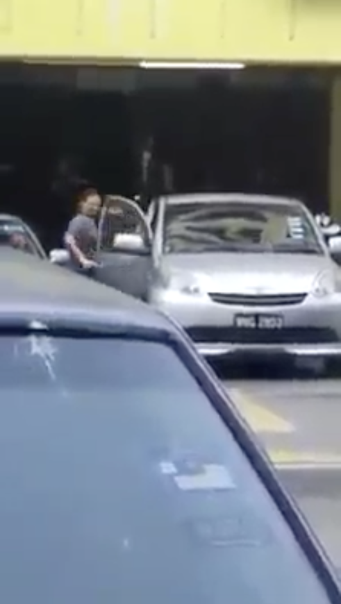 从视频里可以看见是一辆Myvi停在路边,还挡住了2辆轿车,只见有一名女子举起自己的手疯狂的砸向Myvi副驾驶的车窗上。