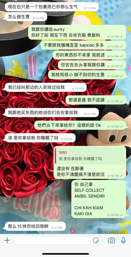 该帖主表示,从事这一行那么久,见过形形色色的奥客,但这名顾客是她看过最高境界的奥客!帖主表示自己是某公司的快递员,因在送货期间找不到顾客的住家位置,而打了好几通电话给顾客询问,也问了附近的人,还是找不到。于是她并WhatsApp顾客安排星期一再派送时,竟遇到顾客无礼的回复!