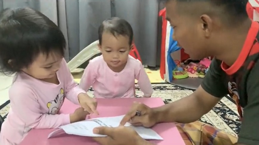 父亲开始向两位女儿解释里面的内容,而女儿看起来有听没懂,之后父亲示意她们签名,两位女儿乱画一通,成功签了该协议。父亲还强调:“要先完成文凭或学士学位,然后才可以有男朋友,知道吗?”