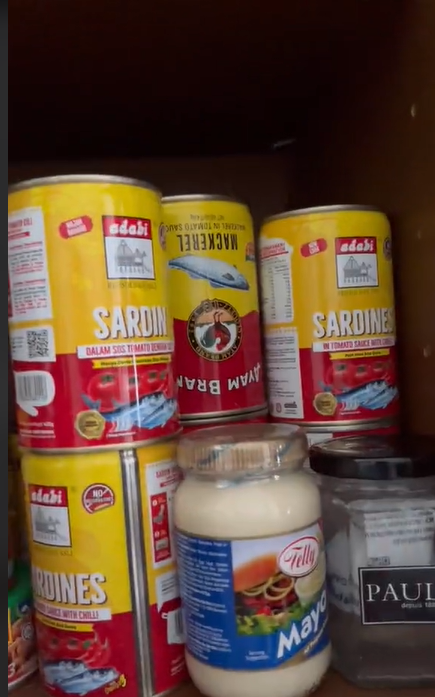 她也在视频中展示了她的冰箱和橱柜中,都是父亲买给她的一堆食材,好像怕她会饿坏一样。
