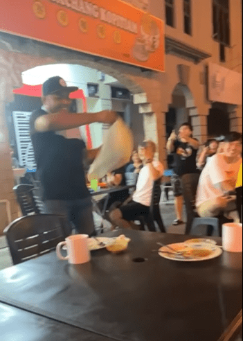 意外的是,突然其中一名店员不知是否发生失误,竟意外讲印度煎饼直接丢到老公的脸!一整片roti canai赤裸裸地“飞“到老公地脸!
