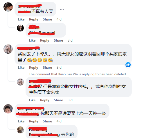 除了定制原味内裤外,穿过的内衣也有!售价高达RM120!还有买过的买家,在下面给了5星好评!