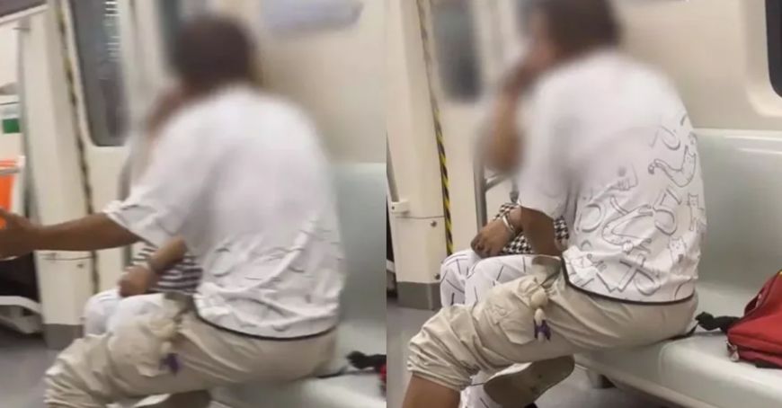 视频中的地点显示是在某个地铁车厢内,该男子正坐在一名女子的身旁,用方言质问她“你跟男人在一起你爱谁”,女子沉默不回答,男子又扇了对方几巴掌。