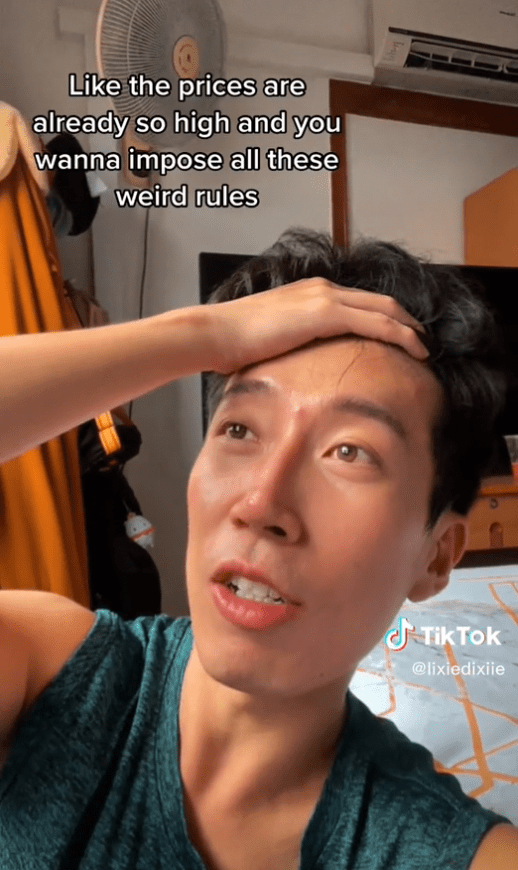 他在视频中所列出的几种出租条例,例如“不能煮食”、“一周只能洗一次衣服”或是“凌晨12点后不能洗衣服”、“上班时间必须是朝九晚五”,这种种条件都让这名网友表示不理解。
