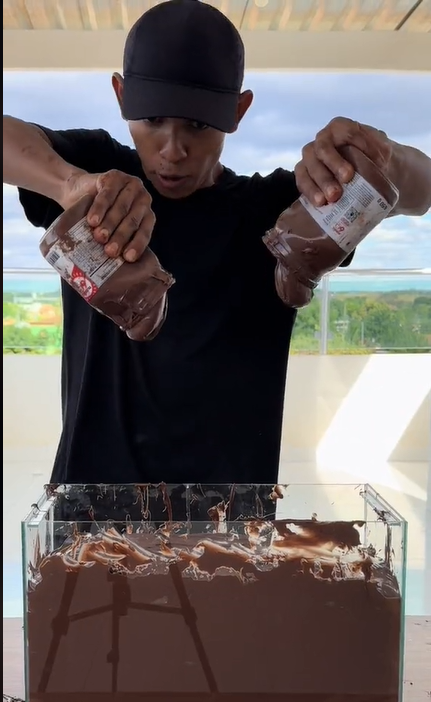 流量时代众声喧哗,许多网民为了冲流量,而做出各章匪夷所思的挑战。互联网近日就流传一则视频,一名年轻人挑战吃完一整缸巧克力酱。