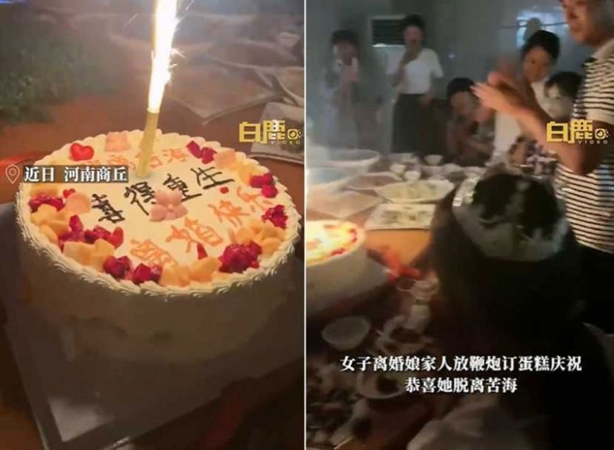 中国河南省商丘市有一名女子,结婚7年离婚,娘家人反而买蛋糕放鞭炮庆祝,恭喜她脱离苦海,引发社会民众对于娘家逆思维的作风热烈讨论。