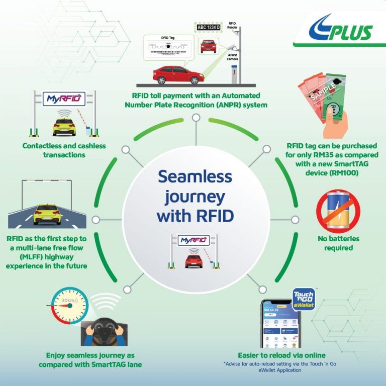 该公司表示,驾驶者可以每小时30公里车速通过全新的收费系统,与SmartTAG的每小时20公里相比速度更快速。系统将会通过RFID技术和高清摄像头自动侦测到车牌号码,并直接从Touch ’n Go电子钱包中扣除路费,为驾驶者提供无现金的便利,而且还能够启动电子钱包自动充值功能,可以随时随地充值确保余额充足。每个RFID标签价格是RM35,相较SmartTAG设备RM100更为便宜,也可在网上订购并自行安装套装。