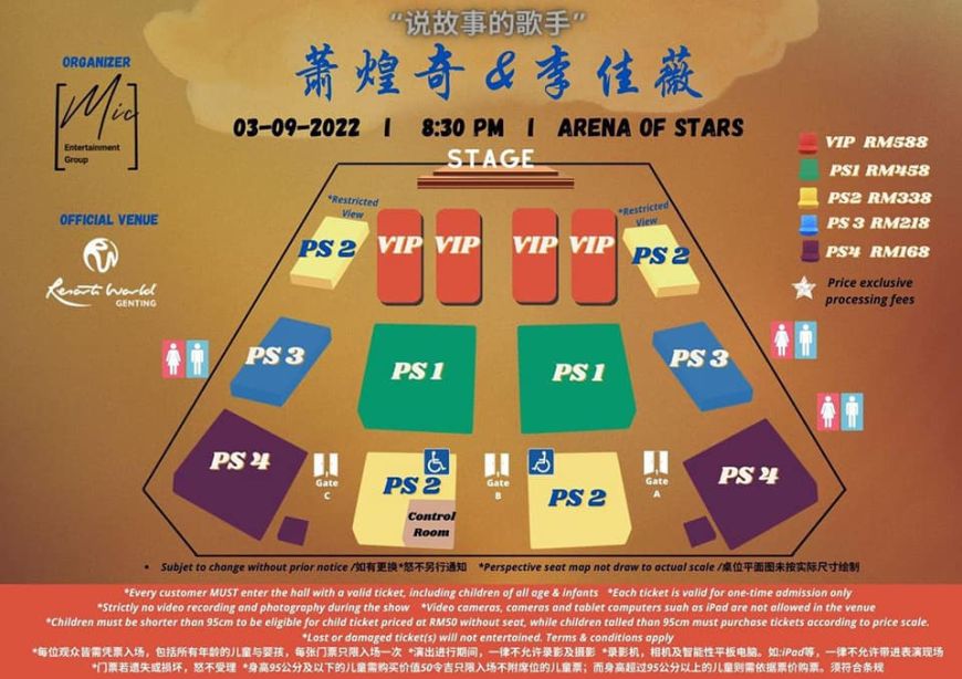 由MIC娱乐主办的萧煌奇和李佳薇《说故事的歌手》马来西亚演唱会也将于9月3日,晚上8时30分在云星剧场举行。门票将于7月14日,早上10时公开发售,票价分别为RM588 (VIP)、RM458 (PS1)、RM338 (PS2)、RM218 (PS3) 及RM168 (PS4)。