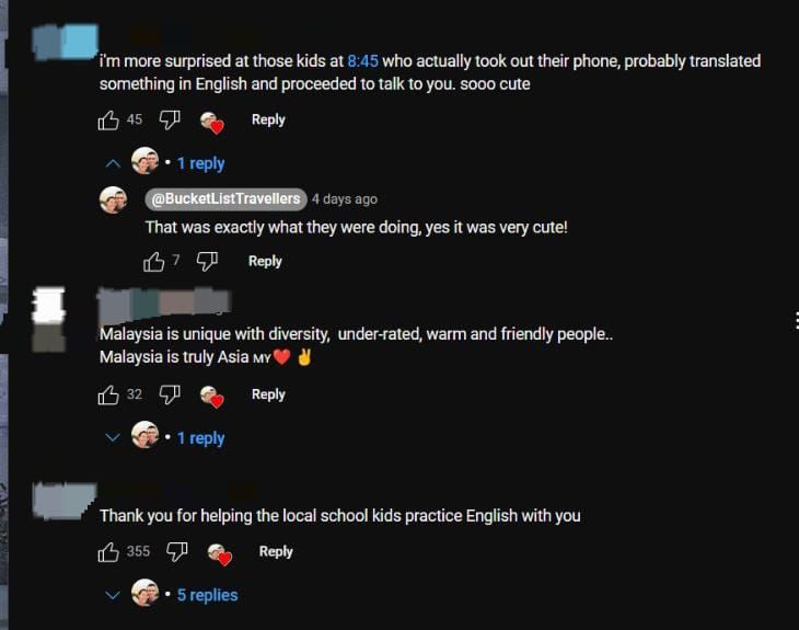 这视频因此爆火,而引来了许多到访过马来西亚的人在评论区留言他们也曾体验过此暖心的经历。而马来西亚人就感谢Jon和Jay在他们的 YouTube 频道上突出马来西亚郊区,并希望看到更多他们的内容。