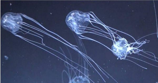 三桨水母科迎来了它的第4个家庭成员———一种长有24只眼睛、长度约1.27厘米、触手约10公分长,并带有非常危险的刺的水母。