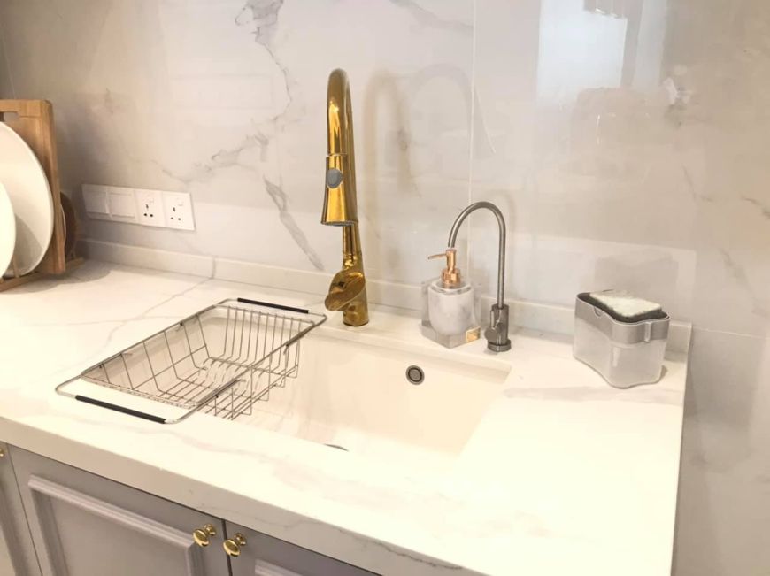 白色石英石水槽 RM188 *送水槽晾碗篮 +肥皂管+切菜板+一对刀叉 *本地石英石水槽 RM1200++
