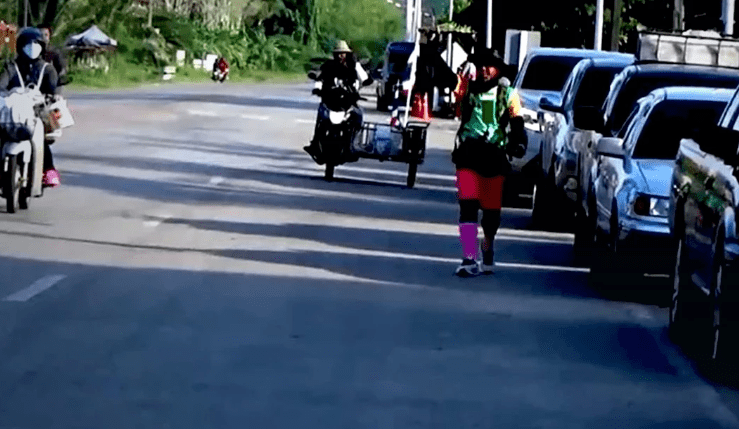 截至周六,他已经走了1,100公里的旅程,并与50岁的朋友Niwat Thongwithi一起抵达董里(Trang),现在Suthep距离他的女友Thanapa Khiaw-on在泰南沙敦(Satun)的家约100公里。