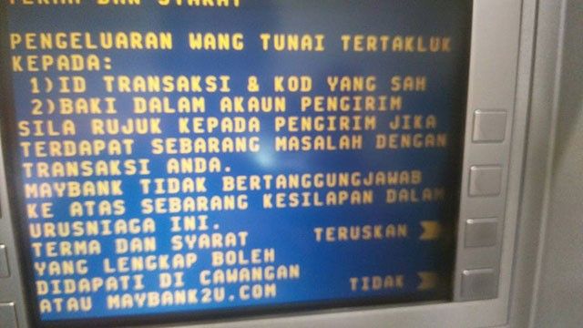 7. 前往提款机,点击 无卡提款选项(PENGELUARAN TANPA KAD)