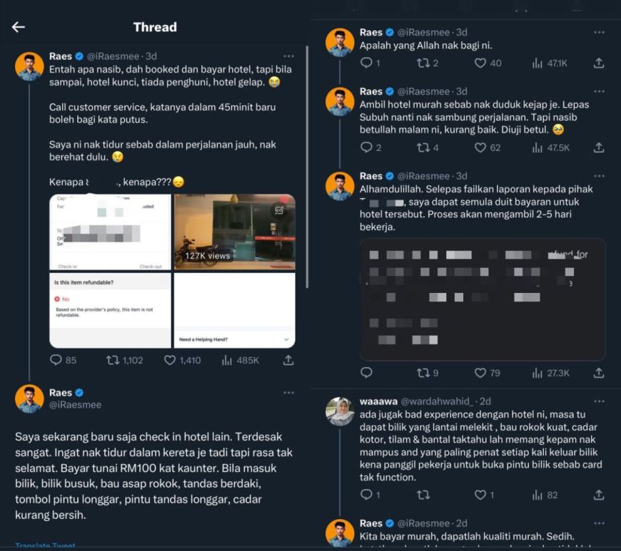 据@iRaesmee推特用户称,他在预订了该地区一家酒店的住宿后,于周六前往森美兰州的一个地区。