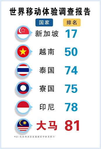 在真实情况中,马来西亚的4G信号数据速度在本区域内排位较低。根据世界移动体验(Global Mobile Experience)的调查报告中,我国在全球排名81,在东盟9国中排名第6,显得十分落后。