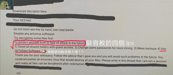 最后网友的爸爸还让骇客教他【如何预防类似的病毒软体】,骇客还很认真的教他!事后,骇客给了一个网址,让网友的爸爸去写骇客不是骗子,他们也是讲诚信的,有钱好办事!但是骇客这样的行为真的不太好哦,明明是自己的东西,无辜被hack了还要付钱买回自己的东西!
