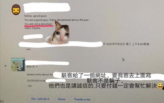 邮件当中还写了自己是“a Poor guy”,差点把网友笑傻了!当然最后骇客也同意以$100美金(约RM419)解锁文件,评论区也有解释道这些骇客都有自己的“职业道德”。如果机主给了钱,他们一定会解锁。